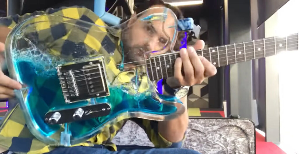 The aquatar might serve as the star of the group, but I have no idea what it looks like, how it works, or what it sounds like. I leave that for readers to imagine. Perhaps the strings stretch within flexible, water-filled membranes. A player would strum them with fingers, not picks. Maybe you could see through the aquatar’s transparent body to the colored water sloshing around inside, with lights illuminating it.